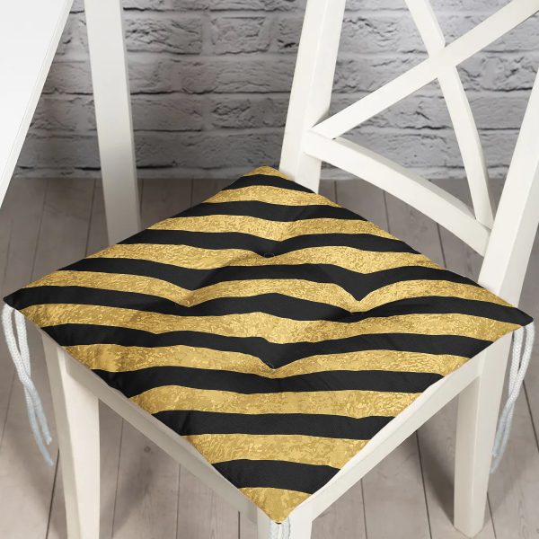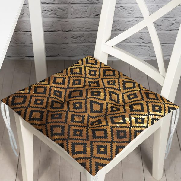 Gold Zemin Üzerinde Siyah Geometrik Desenli Dijital Baskılı Modern Pofuduk Sandalye Minderi
