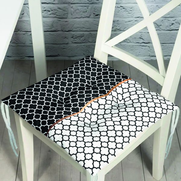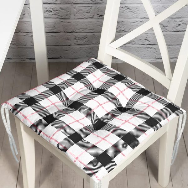 Beyaz Zemin Üzerinde Siyah Ekose Desenli Dijital Baskılı Modern Pofuduk Sandalye Minderi