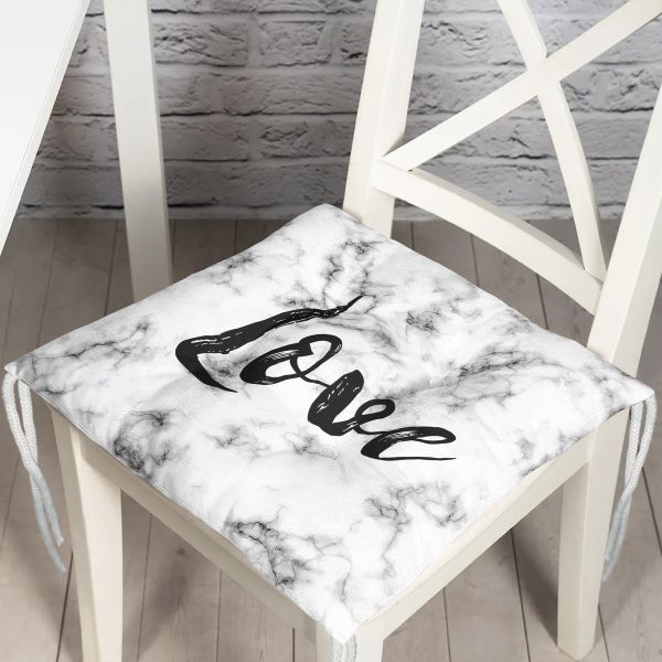 Mermer Zemin Üzerinde Love Yazılı Özel Tasarım Modern Pofuduk Sandalye Minderi