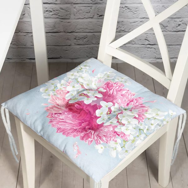 Özel Tasarım Ortanca Çiçeği Motifli Dijital Baskılı Modern Pofuduk Sandalye Minderi