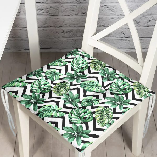 Siyah Beyaz Kazayağı Tasarımlı Pofuduk Sandalye Minderi