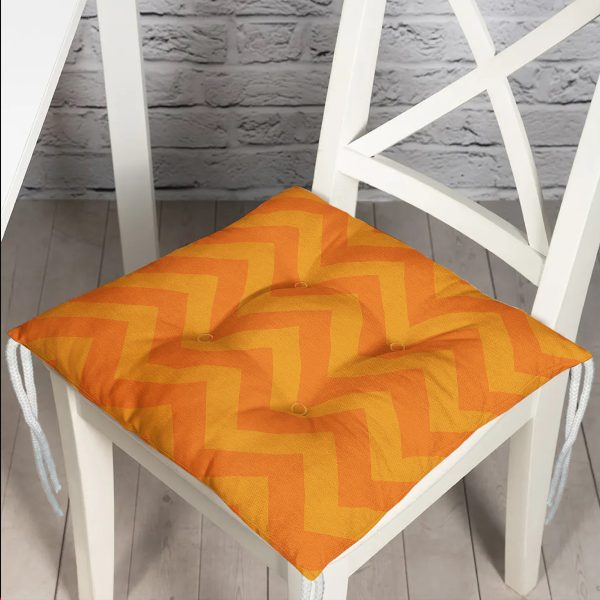Sarı Turuncu Zigzag Tasarımlı Pofuduk Sandalye Minderi