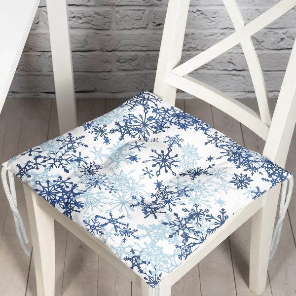 Beyaz Zeminde Mavi Kristal Ve Yıldız Motifli Özel Tasarım Modern Pofuduk Sandalye Minderi