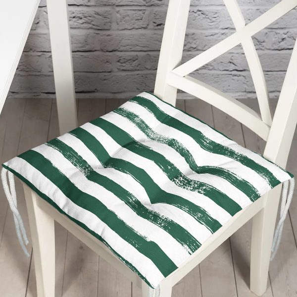 Koyu Yeşil Çizgili Motifli Dekoratif Modern Pofuduk Sandalye Minderi