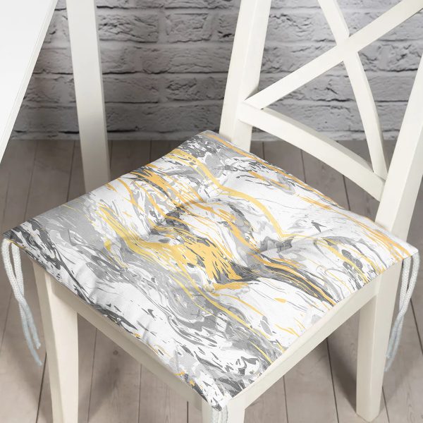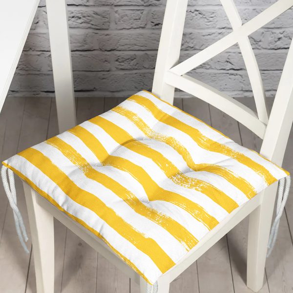 Sarı Çizgili Motifli Dekoratif Modern Pofuduk Sandalye Minderi
