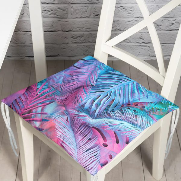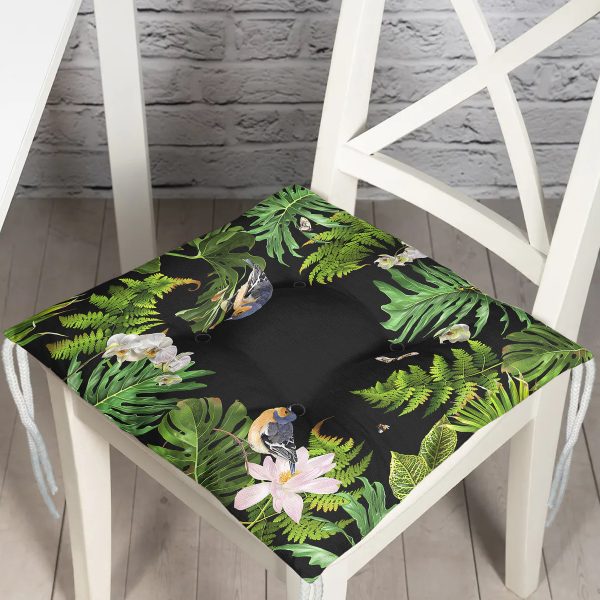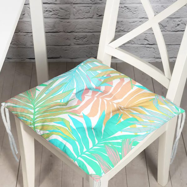 Büyüleyici Renklerde Tropikal Yaprak Desenli Özel Tasarım Pofuduk Sandalye Minderi
