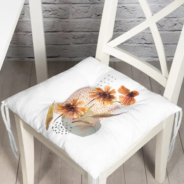 Beyaz Zemin Üzerinde Kurumuş Çiçek Motifli Modern Pofuduk Sandalye Minderi