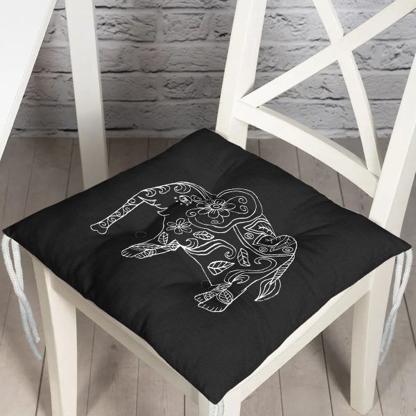 Retro Mandala Fil Desenli Özel Tasarım Pofuduk Sandalye Minderi