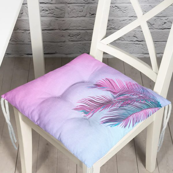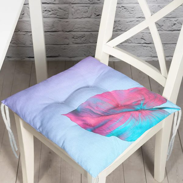 Mavi Ve Pembe Yaprak Çizimli Özel Tasarım Dijital Baskılı Pofuduk Sandalye Minderi
