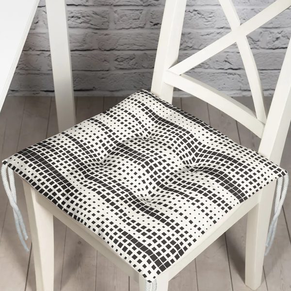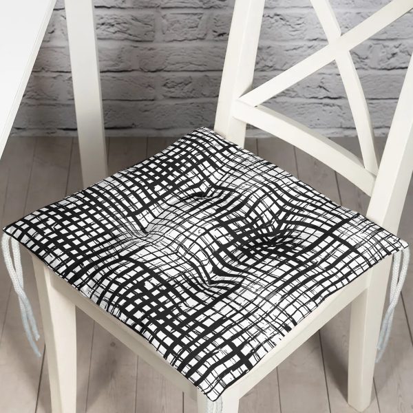 Beyaz Zemin Üzerinde Siyah Ekose Desenli Dijital Baskılı Modern Pofuduk Sandalye Minderi
