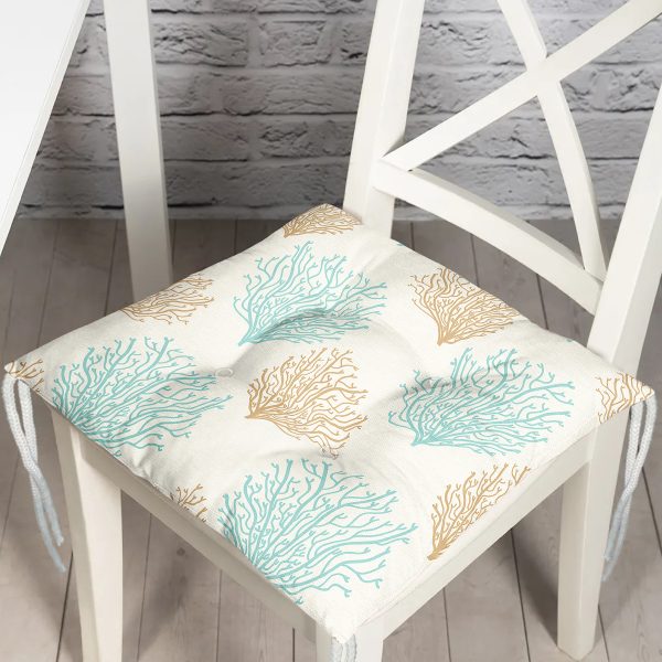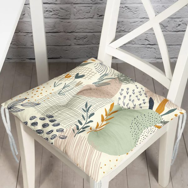 Renkli Zemin Üzerinde Deniz Otu Desenli Dijital Baskılı Modern Pofuduk Sandalye Minderi