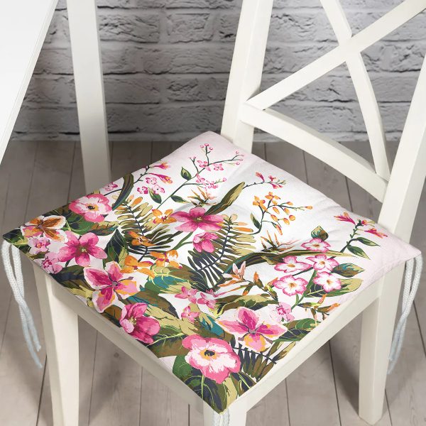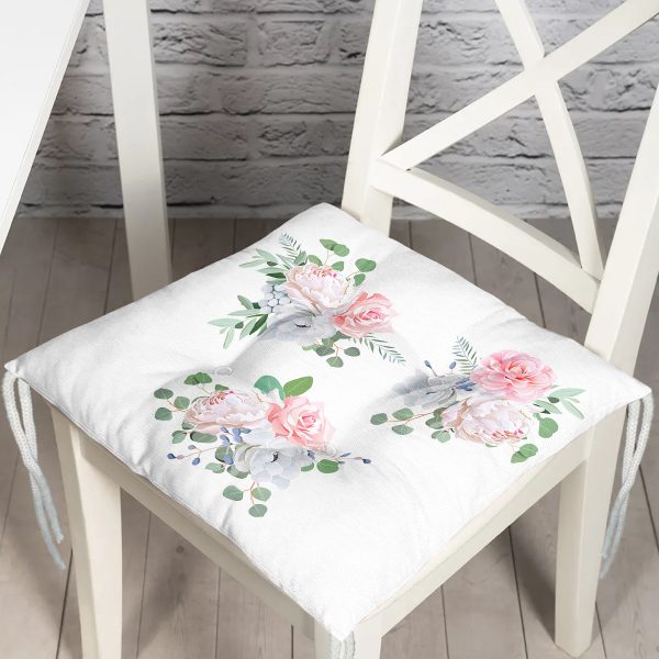 Özel Tasarım Çiçek Temalı Dijital Baskılı Modern Pofuduk Sandalye Minderi
