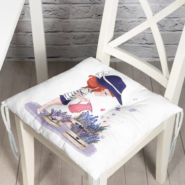 Kız Temalı Dijital Baskılı Modern Pofuduk Sandalye Minderi