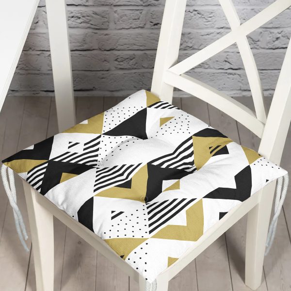 Hardal Renk Geometrik Şekiller Temalı Pofuduk Sandalye Minderi
