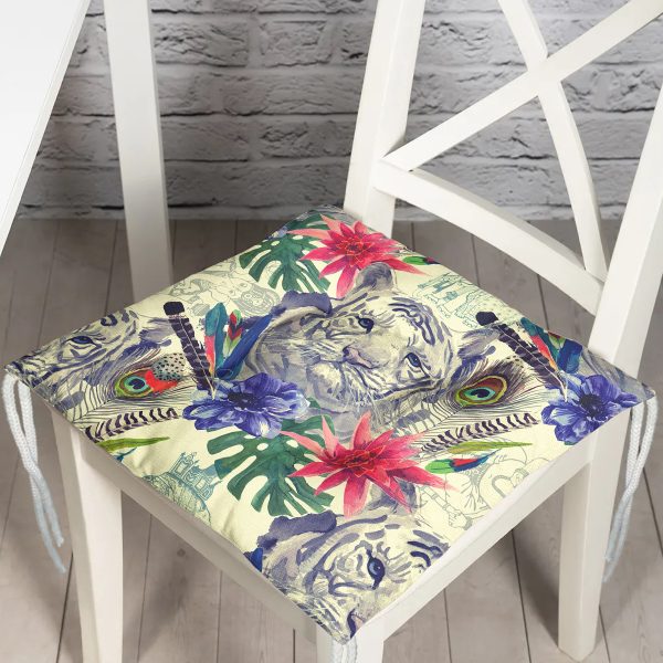 Özel Tasarım Suluboya Amazon Desenli Dijital Baskılı Pofuduk Sandalye Minderi