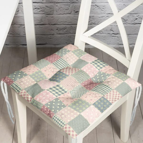 Patchwork Desenli Özel Tasarım Dijital Baskılı Modern Pofuduk Sandalye Minderi