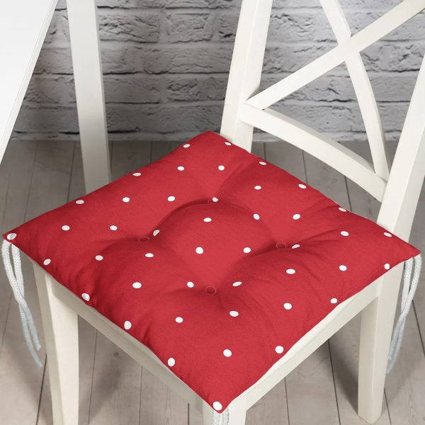 Renkli Zemin Üzerinde Beyaz Puantiyeli Dijital Baskılı Modern Pofuduk Sandalye Minderi