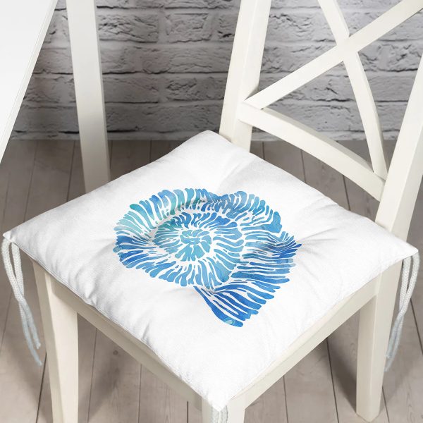 Beyaz Zemin Üzerinde Renkli Deniz Kabuğu Desenli Dijital Baskılı Modern Pofuduk Sandalye Minderi