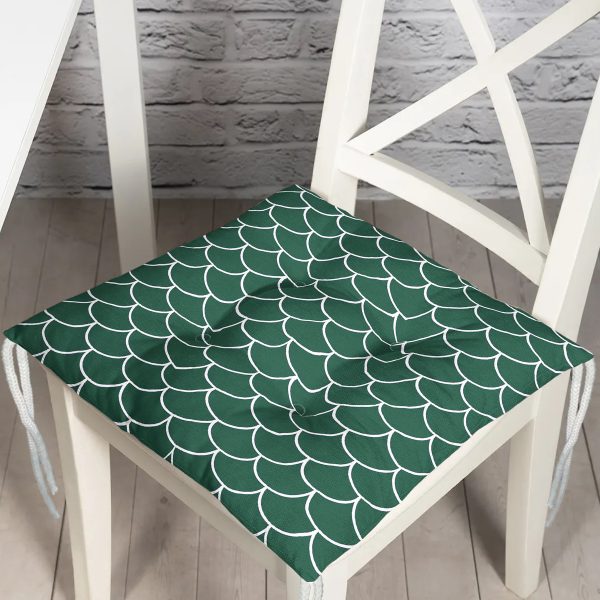 Yeşil Pul Tasarımlı Dijital Baskılı Modern Pofuduk Sandalye Minderi