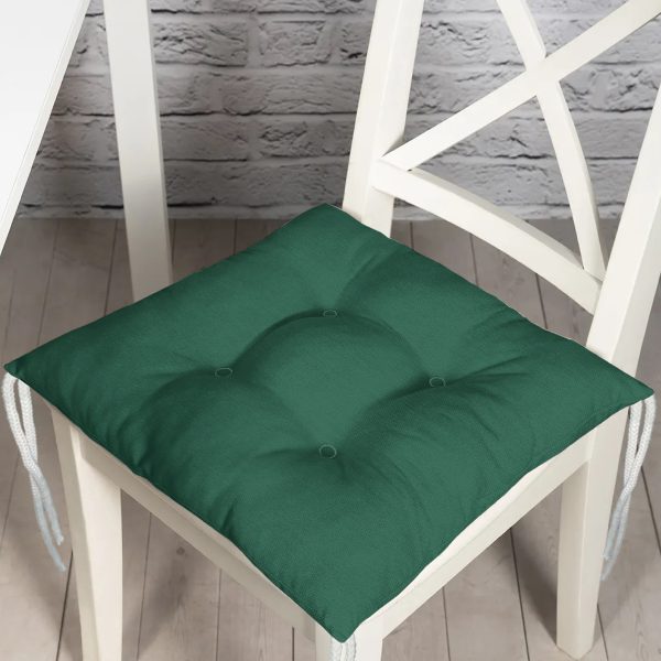 Realhomes Düz Koyu Yeşil Renkli Dijital Baskılı Pofuduk Sandalye Minderi