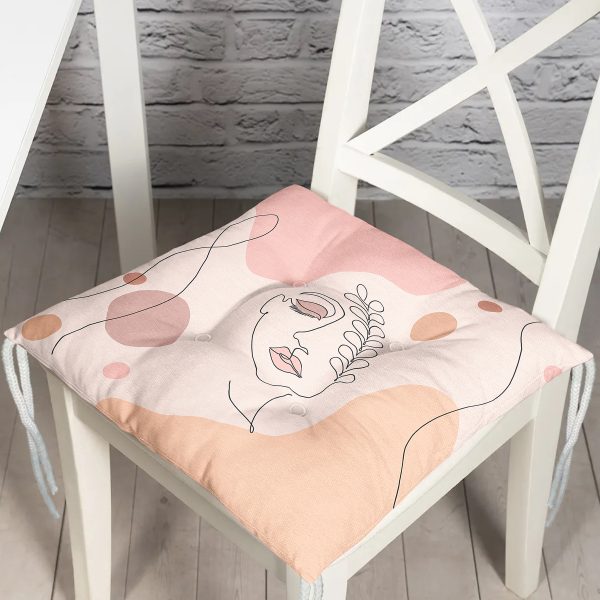 Prenses Pembe Zeminli Yelpazeli Kadın Desenli Dekoratif Pofuduk Sandalye Minderi