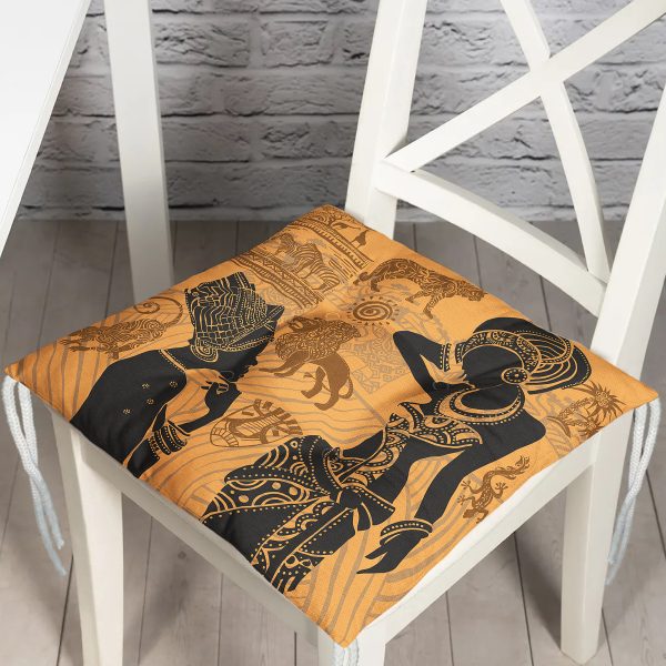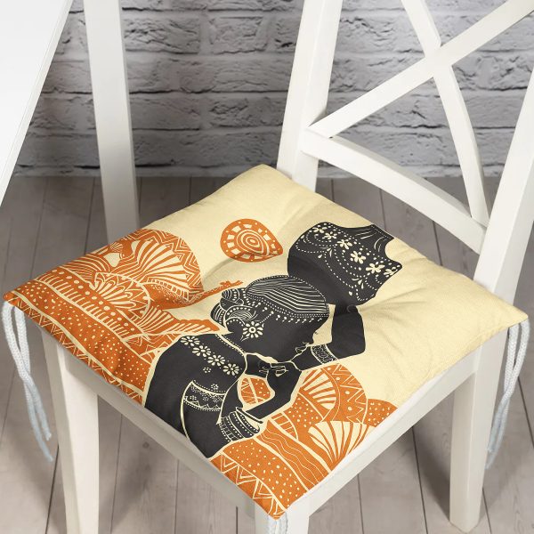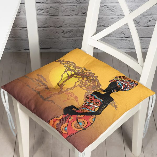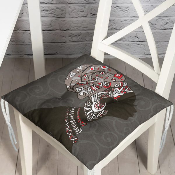 Etnik Desen Zeminli Afrika Kadın Motifli Dekoratif Pofuduk Sandalye Minderi