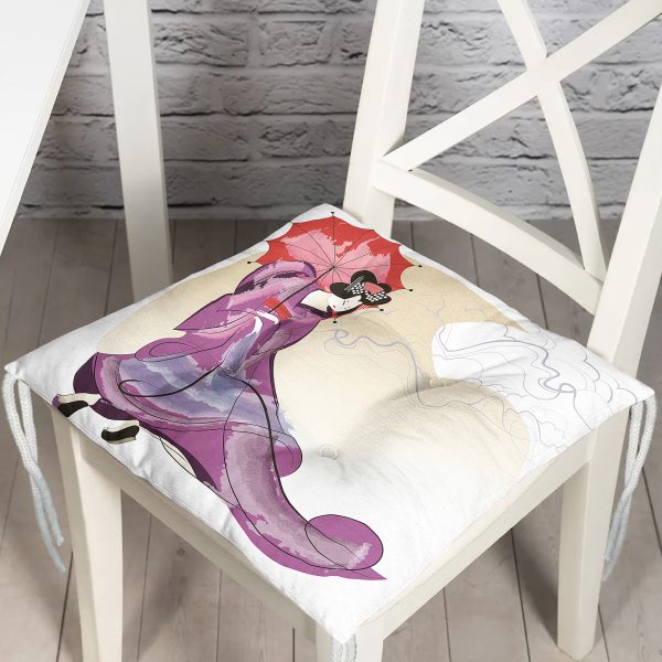 Mor Elbiseli Kırmızı Şemsiyeli Japon Kadın Desenli Modern Pofuduk Sandalye Minderi