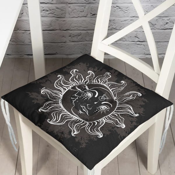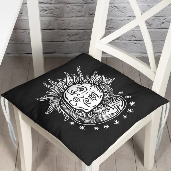 RealHomes Özel Tasarım Güneş Ay Motifli Pofuduk Sandalye Minderi