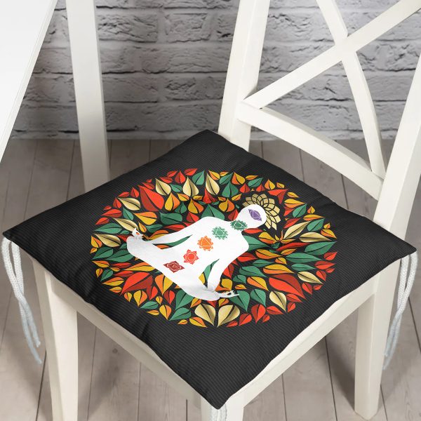 Uzak Doğu Yoga Motifleri Mandalas Özel Tasarım Dijital Baskılı Pofuduk Sandalye Minderi