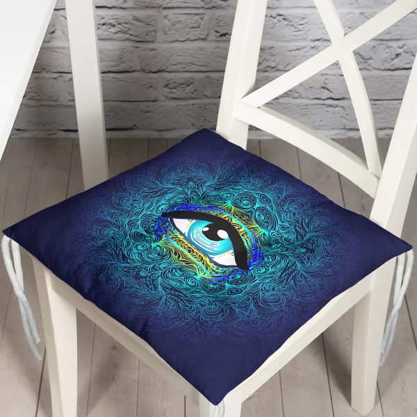 Üçüncü Göz Motifli Özel Tasarım Dijital Baskılı Pofuduk Sandalye Minderi