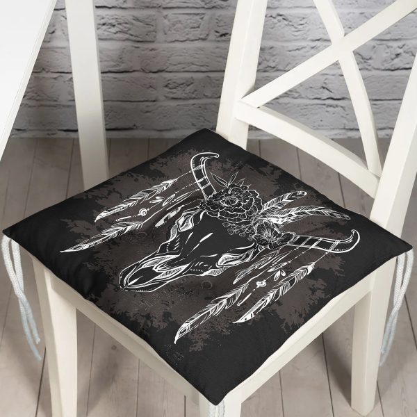 RealHomes Cow Head Özel Tasarım Dijital Baskılı Pofuduk Sandalye Minderi