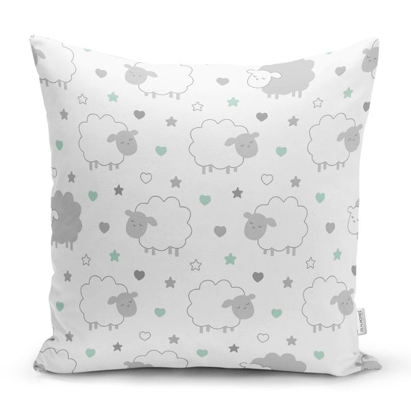 Sevimli Bulutlar Ve Koyunlar Baskılı Dijital Baskılı Özel Tasarım Modern Yastık Kırlent Kılıfı