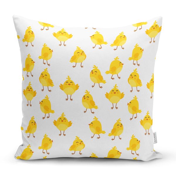 Civciv Motifli Dijital Baskılı Özel Tasarım Modern Yastık Kırlent Kılıfı
