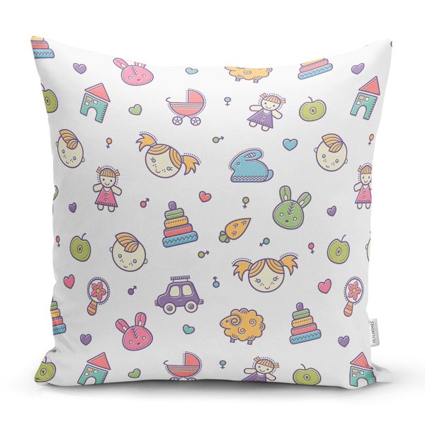 Bebek Oyuncakları Motifli Dijital Baskılı Özel Tasarım Modern Yastık Kırlent Kılıfı