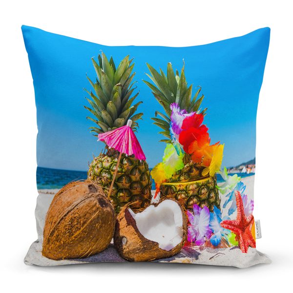Sahilde Ananaslar Dijital Baskılı Modern Yastık Kırlent Kılıfı