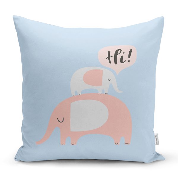 Mavi Zeminde Uçan Fil Desenli Bebek Odası Yastık Kırlent Kılıfı