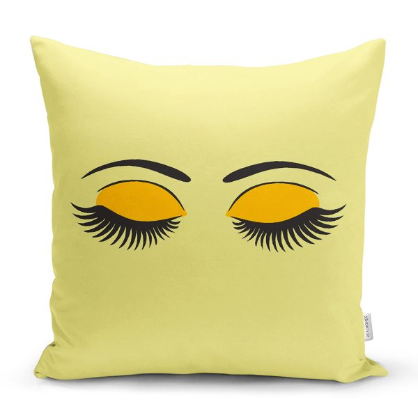 Sarı Zeminde Kirpik Motifli Dekoratif Kırlent Kılıfı