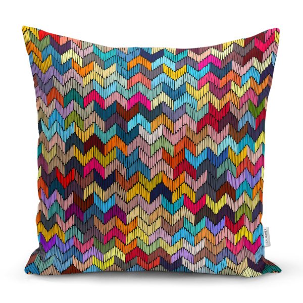 Rengarenk Geometrik Desenli Dijital Baskılı Dekoratif Yastık Kırlent Kılıfı