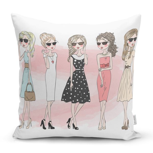 Kız Figürlü Tasarım Dijital Baskılı Modern Yastık Kırlent Kılıfı