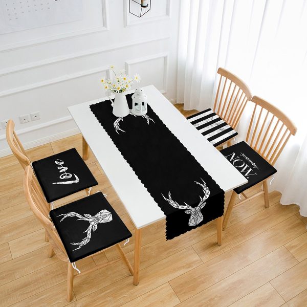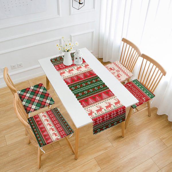 Ekose Geyik Yılbaşı Motifli 4 Fermuarlı Sandalye Minderi ve 1 Runner Seti