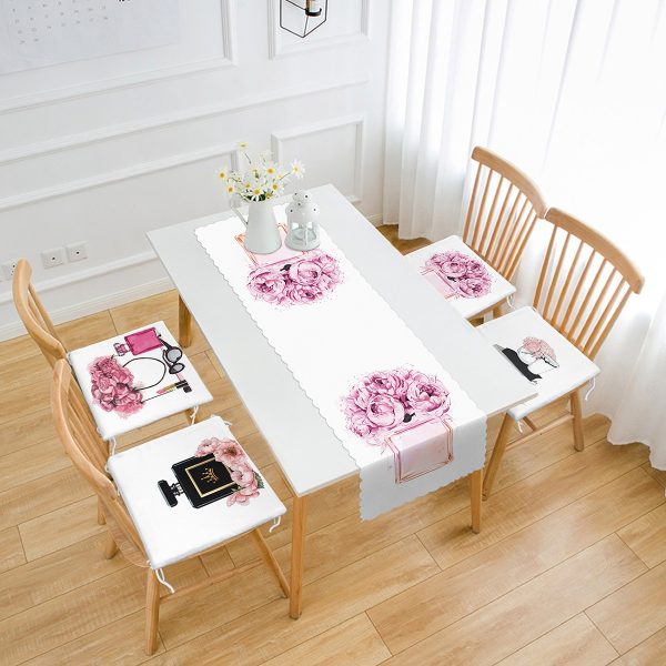Dama Zeminli Fashion Girl Tasarımlı 4 Pofuduk Sandalye Minderi ve 1 Runner Seti