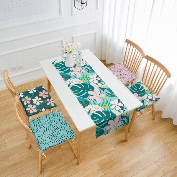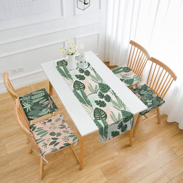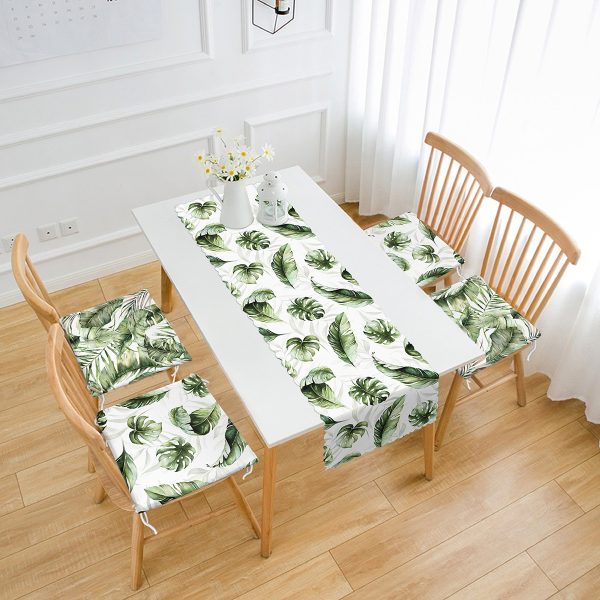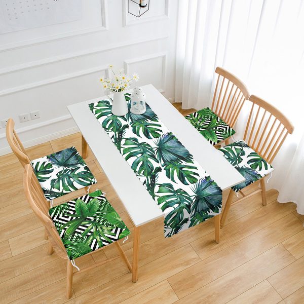 Yesil Tropik Yaprak Tasarımlı 4 Fermuarlı Sandalye Minderi ve Runner Seti