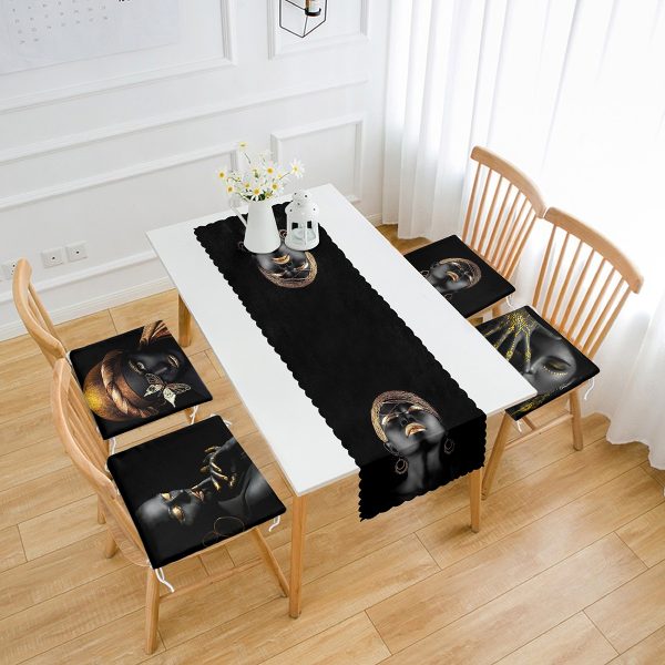 Siyahi Arap Kadın Tasarımlı 4 Fermuarlı Sandalye Minderi ve 1 Runner Seti