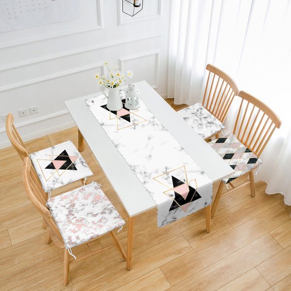 Mermer Zeminli Geometrik Çizimler 4 Fermuarlı Sandalye Minderi ve 1 Runner Seti