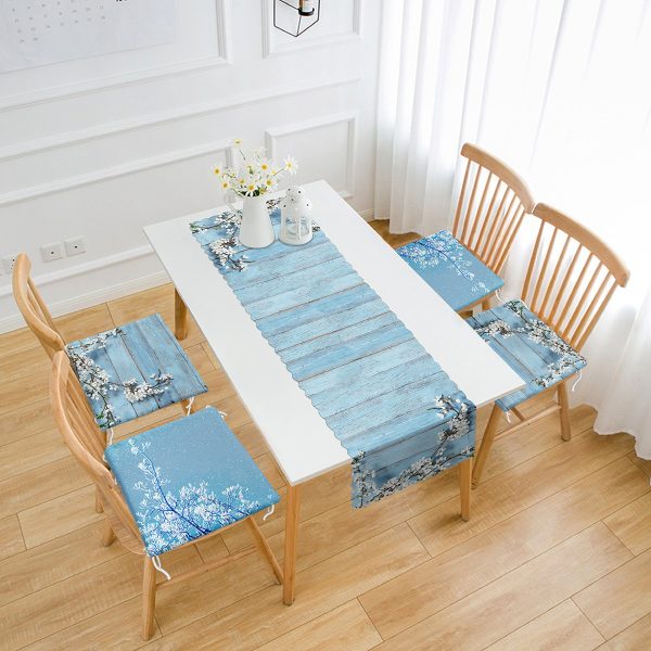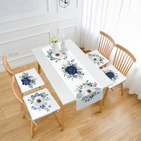 Mavi & Beyaz Gül Özel Tasarım 4 Fermuarlı Sandalye Minderi 1 Runner Seti
