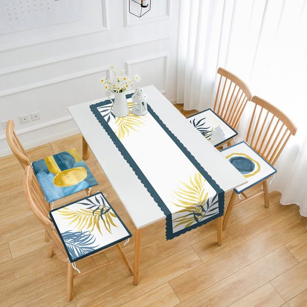 Yaprak Motifli 4 Fermuarlı Sandalye Minderi ve 1 Runner Seti