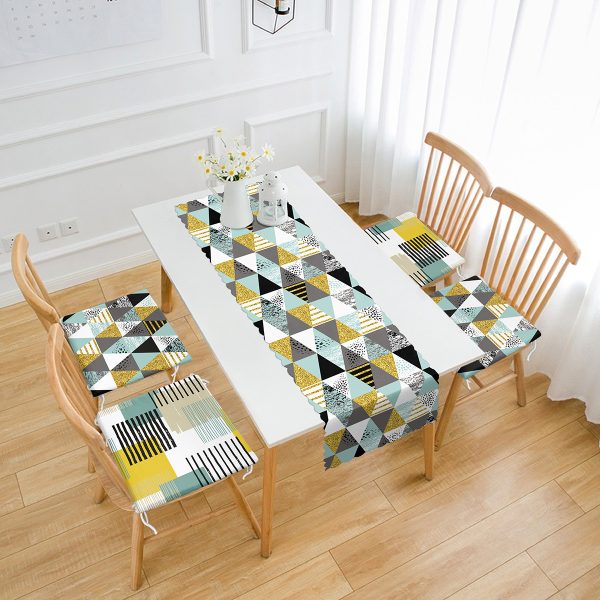 Üçgen Geometrik Şekiller 4 Fermuarlı Sandalye Minderi ve 1 Runner Seti