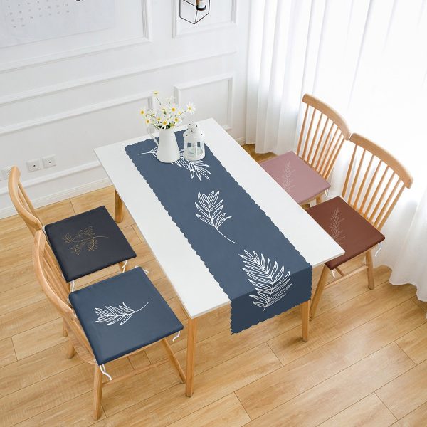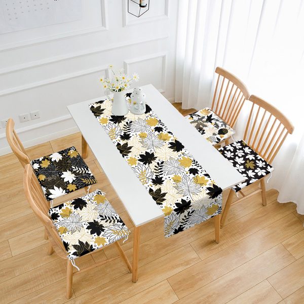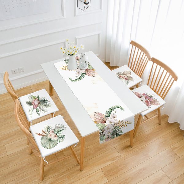 Yaprak Motifli 4 Pofuduk Sandalye Minderi ve 1 Runner Seti