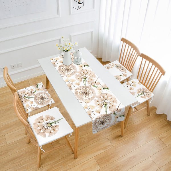 Suluboya Çizimli Karahindiba Tasarımlı 4 Fermuarlı Sandalye Minderi ve 1 Runner Seti