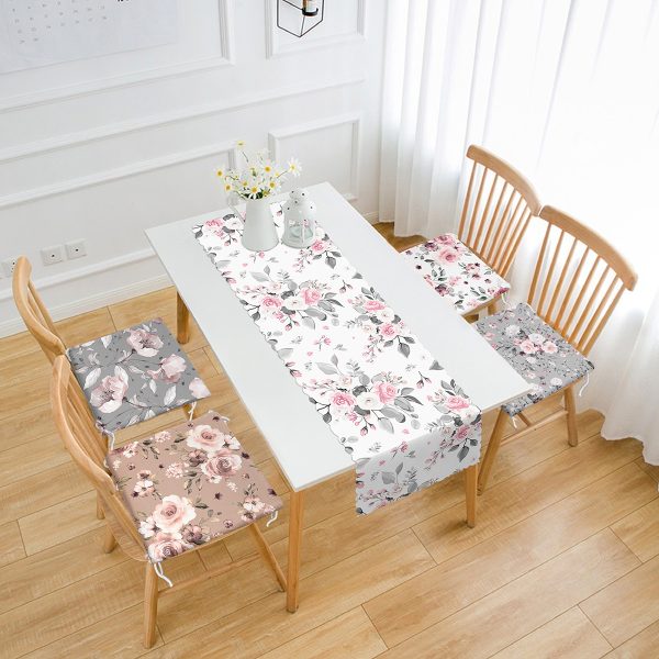 Renkli Gül Tasarımlı 4 Pofuduk Sandalye Minderi ve 1 Runner Seti